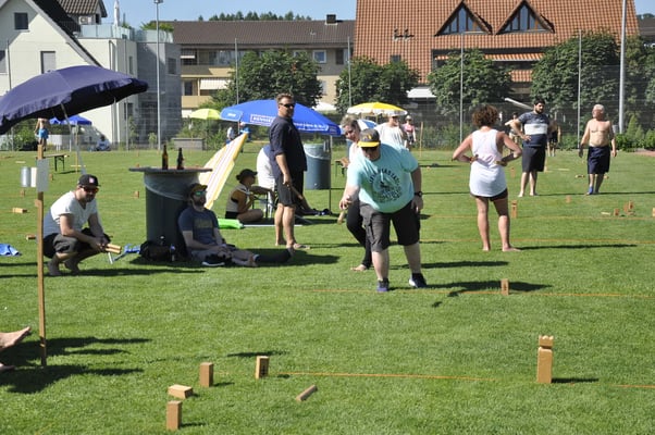 Die 6. Ausgabe des Fisi Kubb Open in Fislisbach war ein perfekter Kubbtag für uns OK und die vielen verrückten Kubber. Diesmal mit heissem Sommerwetter, was uns dazu brachte wiedermal ein Pool aufzustellen und ein paar mehr Sonnenschirme wie auch Sonnecreme zu verteilen. Der Platzwart konnte wie abgemacht ein feiner Rasen herzaubern. Somit stand nichts mehr im Weg für alle diesen Tag in Fislisbach zu geniessen. Das Foodangebot mussten wir natürlich bestätigen und konnten wieder viel Lob einnehmen. Dieses Jahr hatten wir ein neues Entsorgungskonzept. Mit echtem Geschirr und vielen verschiedenen Entsorgungskübel wurde etwas für die Umwelt gemacht.