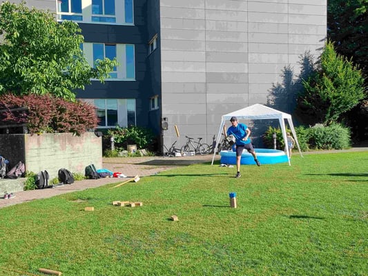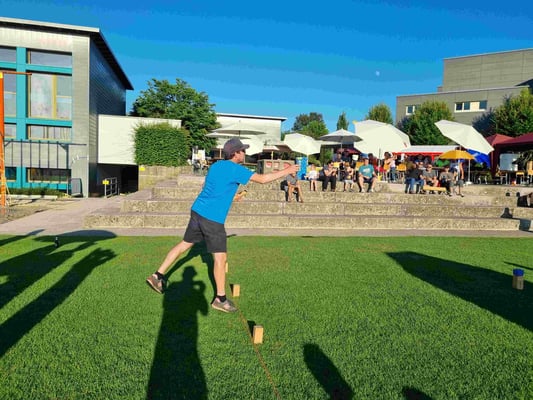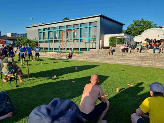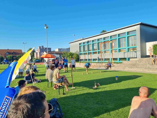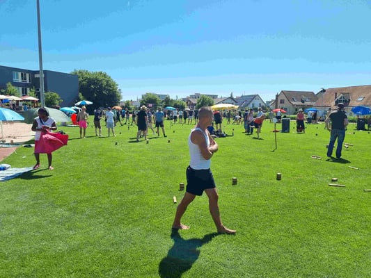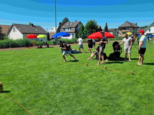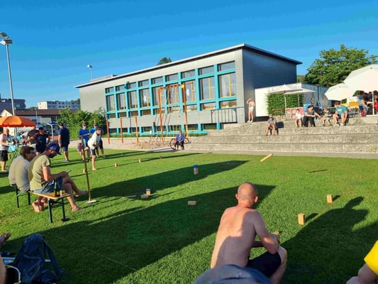 Endlich konnten wir wieder das Fisi Kubb Open durchführen und unsere 7. Ausgabe feiern. 53 Teams kubbten im neuen Schoch-Modus und bestritten 7 Vorrundespiele gegen ähnlich starke Gegner. Die Gastwirtschaft lief rund und belieferten die Gäste mit erfrischenden Getränken und wie immer mit feinem und viel gelobten Essen. Bei sommerlichen Wetter war der Pool, die Dusche und genügend Sonnenschirme ein Muss. Mit dem Entsorgungskonzept versuchten wir wieder mit echtem Geschirr und vielen verschiedenen Trennkübel der Umwelt gerecht zu werden.