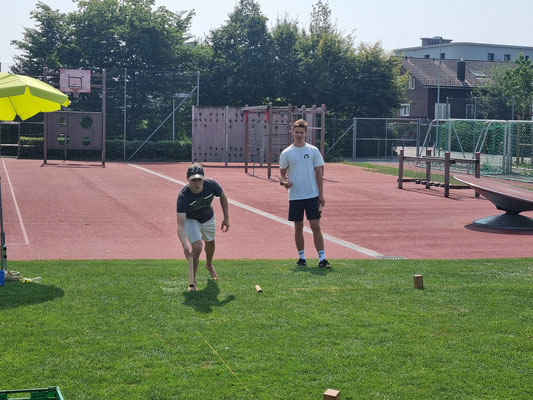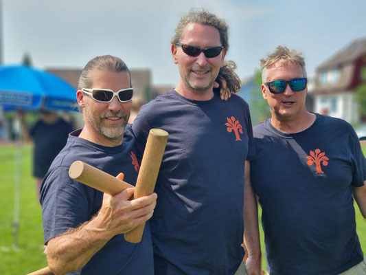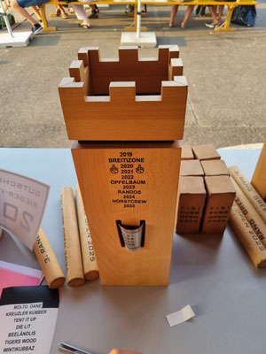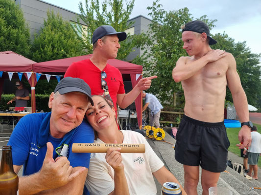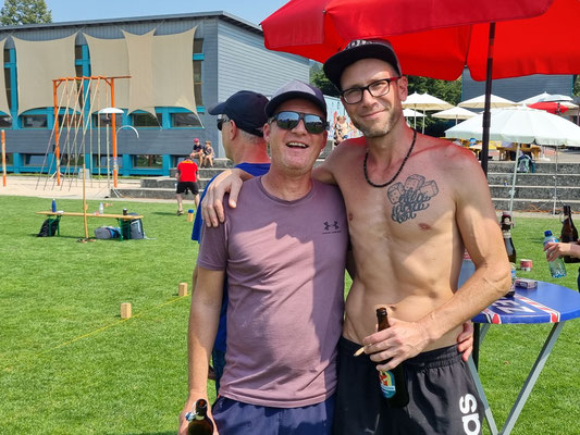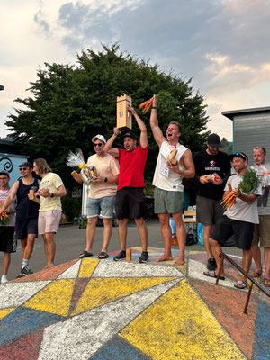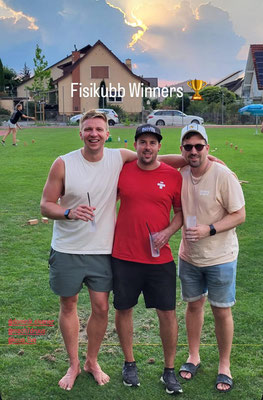 Beide Turniere spielten im Schochmodus, wobei im Fisi Kubb 8 Runden und bei den Greenhorns 7 Runden absolviert wurden. Ab 16 Uhr ging es in die KO-Phase. Beim Fisi Kubb Open setzten sich nach der Vorrunde Famagusta (mit Nani), Tent it up (mit Flo), Beeyond (mit Fisch) und Een Handvoll Trä auf den ersten 4 Rängen ein bisschen ab. Dahinter folgten Die Lit, Kubbaner 2 und Öpfelbaum, alle mit 92 Punkten. Dann wurde es spannend zwischen Päcklidienst und Beeländlis. Beide 86 Punkte und der Buchholzwert musste entscheiden. Die Brugger Combo hatte die Nase ein wenig vorne, was sie zu einem internen Ko-Game gegen Famagusta brachte, die sich mit 3:1 durchsetzten. Een Hand voll Trä besiegte Die Lit in einem spannenden Spiel mit 3:2. Mit dem gleichen Resultat gewannen die Jahresdominatoren Tent it up im alten Duell gegen Öpfelbaum. Einzig Beeyond machte kurzen Prozess mit den Kubbaner und setzte sich mit 3:0 durch. Im Halbfinal war dann die Luft draussen bei Trää und sie verloren klar 3:0 gegen Famagusta. Im anderen Halbfinal gingen Beeyond schnell 2:0 in Führung. Wobei Tent it up nicht aufgaben und den 3. Satz für sich entschieden. Dann war es doch so weit, das 3:1 wurde klar gemacht und Beeyond war im Finale. Das Spiel um Rang 3 gewann Tent it up gegen Trää klar mit 3:0. Im Final standen sich also Famagusta und Beeyond gegenüber. Auch hier war es zu Beginn ausgeglichen mit je einem Satzgewinn. Den vorentscheidenden 3. Satz und dann mit dem finalen 3:1 sicherte sich Beeyond zum ersten Mal den Fisi Kubb Titel. Herzliche Gratulation an Vögi, Domi und Fisch